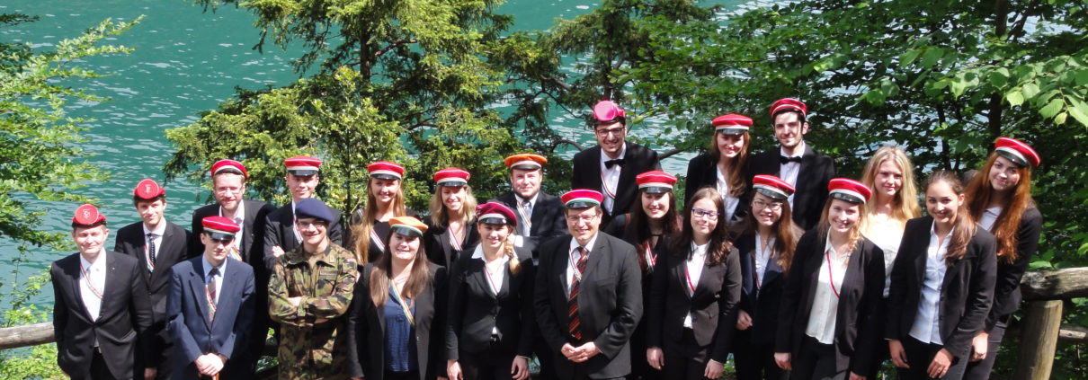 Die Schifffahrt zum Rütli weckte auch die letzten müden Geister und alle hatten genügend Kraft sich über den kurzen Aufstieg zu beschweren und dennoch zu meistern. An der Wiese angekommen, konnten alle den Ausführungen von unserem AH-Aktuar Kälin v/o Leopard lauschen. Er gab uns einen Einblick in die Geschichte, Wichtigkeit und Symbolträchtigkeit der Rütliwiese, sowie auch über den Rütli-Rapport von General Guisan. Nach diesem spannenden Vortrag begab sich die bunte Schar von Corvinern, Suitianern und Turicern ins Restaurant um sich mit Speis und Trank zu stärken und gemütlich zu plaudern.