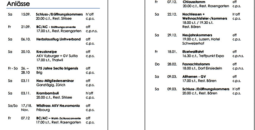 Das Semester ist wieder einmal vergangen, der Sommer liegt hinter uns, das Zentralfest wurde gefeiert und somit ist es Zeit für den Schluss-/Eröffnungskommers. Pünktlich zu diesem ist auch das neue Semsterprogramm wieder aufgeschaltet. Wir freuen auch in diesem Semester immer über Besucher, ob am Stamm oder an den Kommersen ist dabei egal.